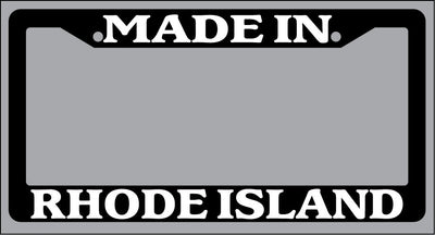 Black License Plate Frame "Made in Rhode Island" Auto Accessory Novelty Black license plate frame made from high impact ABS plastic, covered with color vinyl printing. This frame is designed to last. These frames will last longer than your car.