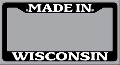 Black License Plate Frame "Made in Wisconsin" Auto Accessory Novelty Black license plate frame made from high impact ABS plastic, covered with color vinyl printing. This frame is designed to last. These frames will last longer than your car.