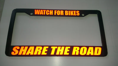 BLACK WATCH FOR BIKES SHARE THE ROAD RED License Plate Frame REFLECTIVE SAFETY