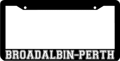BROADALBIN PERTH License Plate Frame Plastic License Plate Frame Polystyrene plastic with vinyl graphics. Strong with tabs on the back to secure your plate to the frame. This is a buy it now for the frame pictured It is designed to fit a US/CANADA license plate.