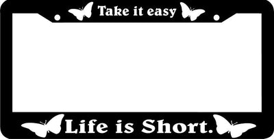 Butterflies butterfly TAKE IT EASY LIFE IS SHORT butter fly License Plate Frame