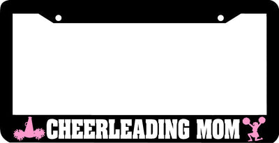 CHEERLEADING MOM LICENSE PLATE FRAME Plastic License Plate Frame Polystyrene plastic with vinyl graphics. Strong with tabs on the back to secure your plate to the frame. This is a buy it now for the frame pictured