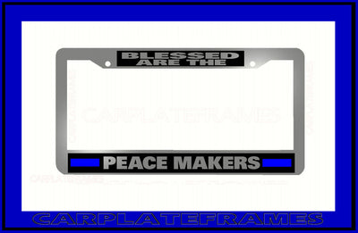 CHROME PLASTIC BLESSED ARE THE PEACE MAKERS THIN BLUE LINE License Plate Frame