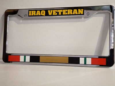 CHROME plastic IRAQ VETERAN war service ribbon medal war License Plate Frame