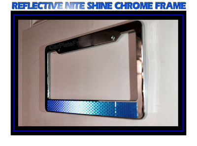 CHROME REFLECTIVE BLUE LINE NITE SHINE PLASTIC TAG HOLDER License Plate Frame