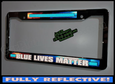 chrome REFLECTIVE BLUE LIVES MATTER License Plate Frame