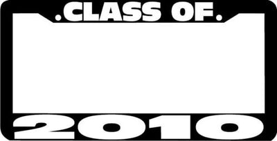 Class of 2010 License Plate Frame Plastic License Plate Frame Polystyrene plastic with vinyl graphics. Strong with tabs on the back to secure your plate to the frame. This is a buy it now for the frame pictured It is designed to fit a US/CANADA license plate.