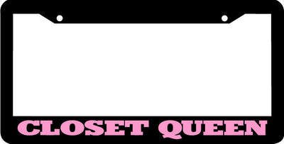 CLOSET QUEEN License Plate Frame Plastic License Plate Frame Polystyrene plastic with vinyl graphics. Strong with tabs on the back to secure your plate to the frame. This is a buy it now for the frame pictured It is designed to fit a US/CANADA license plate.