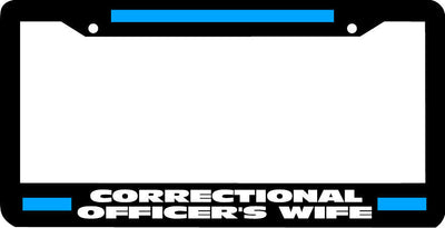 CORRECTIONAL OFFICER'S WIFE License Plate Frame Plastic License Plate Frame Polystyrene plastic with vinyl graphics. Strong with tabs on the back to secure your plate to the frame. This is a buy it now for the frame pictured It is designed to fit a US/CANADA license plate.