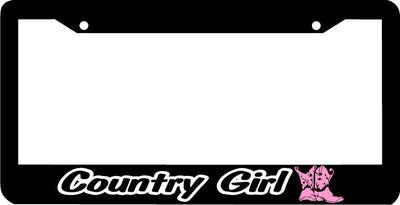 COUNTRY GIRL License Plate Frame Plastic License Plate Frame Polystyrene plastic with vinyl graphics. Strong with tabs on the back to secure your plate to the frame. This is a buy it now for the frame pictured It is designed to fit a US/CANADA license plate.