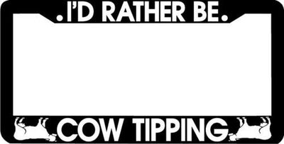 COW TIPPING I'd rather be License Plate Frame Plastic License Plate Frame Polystyrene plastic with vinyl graphics. Strong with tabs on the back to secure your plate to the frame. This is a buy it now for the frame pictured It is designed to fit a US/CANADA license plate.