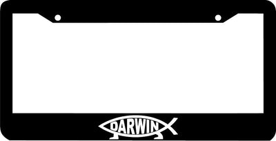 DARWIN FISH License Plate Frame Plastic License Plate Frame Polystyrene plastic with vinyl graphics. Strong with tabs on the back to secure your plate to the frame. This is a buy it now for the frame pictured It is designed to fit a US/CANADA license plate.
