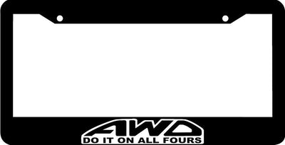 Do it on fours Plastic License Plate Frame Polystyrene plastic with vinyl graphics. Strong with tabs on the back to secure your plate to the frame. This is a buy it now for the frame pictured