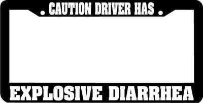 DRIVER HAS EXPLOSIVE DIARRHEA License Plate Frame Plastic License Plate Frame Polystyrene plastic with vinyl graphics. Strong with tabs on the back to secure your plate to the frame. This is a buy it now for the frame pictured It is designed to fit a US/CANADA license plate.