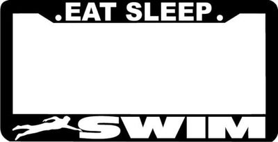 EAT SLEEP SWIM License Plate Frame Plastic License Plate Frame Polystyrene plastic with vinyl graphics. Strong with tabs on the back to secure your plate to the frame. This is a buy it now for the frame pictured It is designed to fit a US/CANADA license plate.