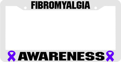 Fibromyalgia Awareness License Plate Frame Plastic License Plate Frame Polystyrene plastic with vinyl graphics. Strong with tabs on the back to secure your plate to the frame. This is a buy it now for the frame pictured It is designed to fit a US/CANADA license plate.