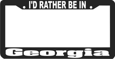 I'D RATHER BE I N License Plate Frame GEORGIA Plastic License Plate Frame Polystyrene plastic with vinyl graphics. Strong with tabs on the back to secure your plate to the frame. This is a buy it now for the frame pictured It is designed to fit a US/CANADA license plate.