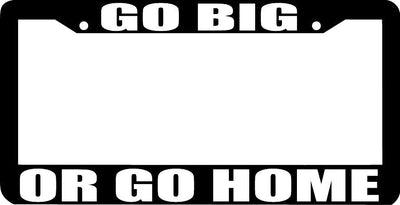 GO BIG OR GO HOME LICENSE PLATE FRAME Plastic License Plate Frame Polystyrene plastic with vinyl graphics. Strong with tabs on the back to secure your plate to the frame. This is a buy it now for the frame pictured