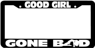 GOOD GIRL GONE BAD License Plate Frame Plastic License Plate Frame Polystyrene plastic with vinyl graphics. Strong with tabs on the back to secure your plate to the frame. This is a buy it now for the frame pictured It is designed to fit a US/CANADA license plate.