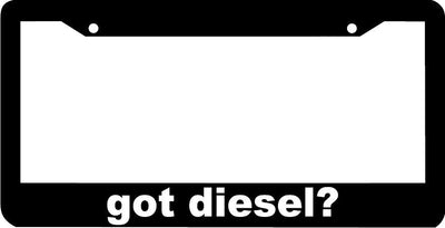 got diesel? License Plate Frame Plastic License Plate Frame Polystyrene plastic with vinyl graphics. Strong with tabs on the back to secure your plate to the frame. This is a buy it now for the frame pictured It is designed to fit a US/CANADA license plate.
