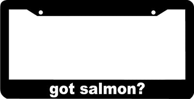 got salmon? License Plate Frame Plastic License Plate Frame Polystyrene plastic with vinyl graphics. Strong with tabs on the back to secure your plate to the frame. This is a buy it now for the frame pictured It is designed to fit a US/CANADA license plate.