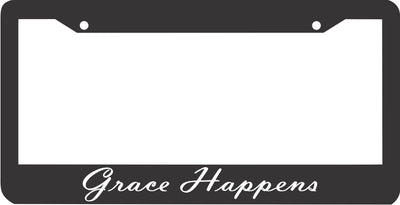 GRACE HAPPENS License Plate Frame Plastic License Plate Frame Polystyrene plastic with vinyl graphics. Strong with tabs on the back to secure your plate to the frame. This is a buy it now for the frame pictured It is designed to fit a US/CANADA license plate.
