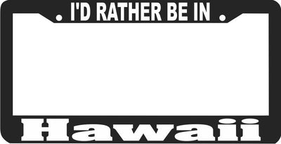 I'D RATHER BE I N License Plate Frame HAWAII Plastic License Plate Frame Polystyrene plastic with vinyl graphics. Strong with tabs on the back to secure your plate to the frame. This is a buy it now for the frame pictured It is designed to fit a US/CANADA license plate.