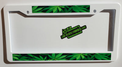 HEMP WEED POT MARIJUANA LEAVES WHITE FRAME PLATE HOLDER License Plate Frame