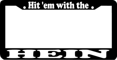 Hit 'em with the HEIN License Plate Frame Plastic License Plate Frame Polystyrene plastic with vinyl graphics. Strong with tabs on the back to secure your plate to the frame. This is a buy it now for the frame pictured It is designed to fit a US/CANADA license plate.