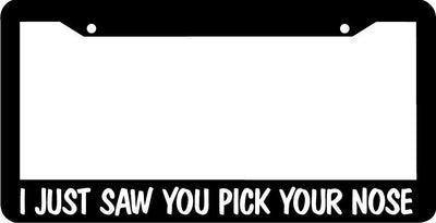 I JUST SAW YOU PICK YOUR NOSE funny License Plate Frame