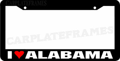 I Love Alabama LICENSE PLATE FRAME BLACK PLASTIC FRAME WITH VINYL GRAPHICS