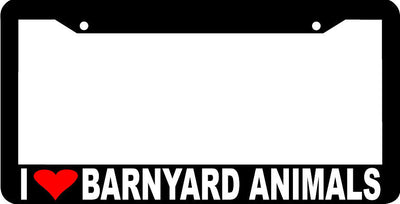I LOVE BARNYARD ANIMALS License Plate Frame Plastic License Plate Frame Polystyrene plastic with vinyl graphics. Strong with tabs on the back to secure your plate to the frame. This is a buy it now for the frame pictured It is designed to fit a US/CANADA license plate.