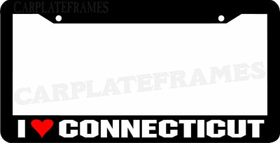 I Love Connecticut LICENSE PLATE FRAME BLACK PLASTIC FRAME WITH VINYL GRAPHICS