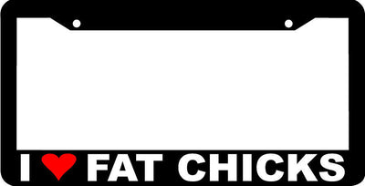 I LOVE FAT CHICKS License Plate Frame Plastic License Plate Frame Polystyrene plastic with vinyl graphics. Strong with tabs on the back to secure your plate to the frame. This is a buy it now for the frame pictured It is designed to fit a US/CANADA license plate.