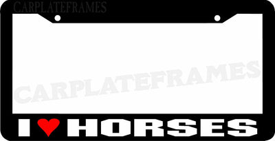 I LOVE HORSES LICENSE PLATE FRAME BLACK PLASTIC FRAME WITH VINYL GRAPHICS