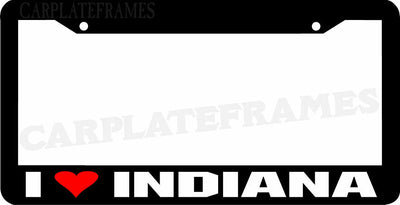I Love Indiana LICENSE PLATE FRAME BLACK PLASTIC FRAME WITH VINYL GRAPHICS