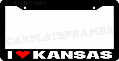 I Love Kansas LICENSE PLATE FRAME BLACK PLASTIC FRAME WITH VINYL GRAPHICS