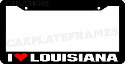 I Love Louisiana LICENSE PLATE FRAME BLACK PLASTIC FRAME WITH VINYL GRAPHICS