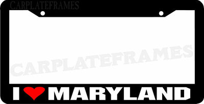 I Love Maryland LICENSE PLATE FRAME BLACK PLASTIC FRAME WITH VINYL GRAPHICS