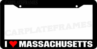 I Love Massachusetts LICENSE PLATE FRAME BLACK PLASTIC FRAME WITH VINYL GRAPHICS