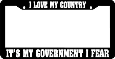 I LOVE MY COUNTRY IT'S MY GOVERNMENT I FEAR funny License Plate Frame
