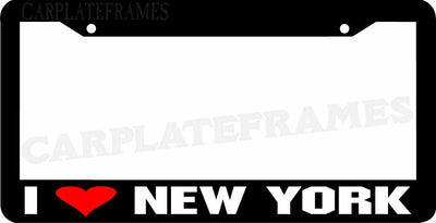 I Love New York LICENSE PLATE FRAME BLACK PLASTIC FRAME WITH VINYL GRAPHICS