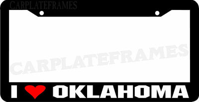 I Love Oklahoma LICENSE PLATE FRAME BLACK PLASTIC FRAME WITH VINYL GRAPHICS