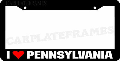I Love Pennsylvania LICENSE PLATE FRAME BLACK PLASTIC FRAME WITH VINYL GRAPHICS