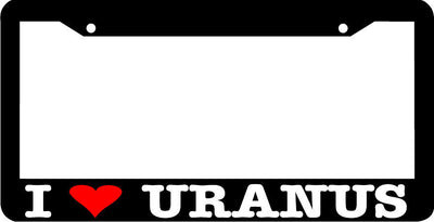 I LOVE URANUS License Plate Frame Plastic License Plate Frame Polystyrene plastic with vinyl graphics. Strong with tabs on the back to secure your plate to the frame. This is a buy it now for the frame pictured It is designed to fit a US/CANADA license plate.