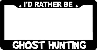 I'd rather be GHOST HUNTING License Plate Frame Plastic License Plate Frame Polystyrene plastic with vinyl graphics. Strong with tabs on the back to secure your plate to the frame. This is a buy it now for the frame pictured It is designed to fit a US/CANADA license plate.