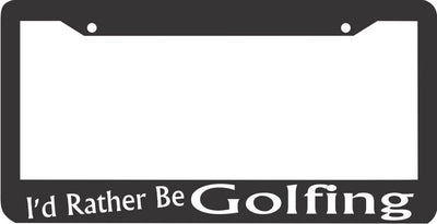 I'D RATHER BE GOLFING License Plate Frame Plastic License Plate Frame Polystyrene plastic with vinyl graphics. Strong with tabs on the back to secure your plate to the frame. This is a buy it now for the frame pictured It is designed to fit a US/CANADA license plate.