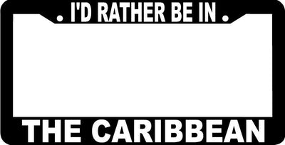 I'd rather be in the Caribbean Plastic License Plate Frame Polystyrene plastic with vinyl graphics. Strong with tabs on the back to secure your plate to the frame. This is a buy it now for the frame pictured