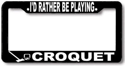 I'd rather be playing CROQUET License Plate Frame Plastic License Plate Frame Polystyrene plastic with vinyl graphics. Strong with tabs on the back to secure your plate to the frame. This is a buy it now for the frame pictured It is designed to fit a US/CANADA license plate.