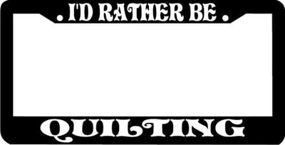 I'D RATHER BE QUILTING License Plate Frame Plastic License Plate Frame Polystyrene plastic with vinyl graphics. Strong with tabs on the back to secure your plate to the frame. This is a buy it now for the frame pictured It is designed to fit a US/CANADA license plate.